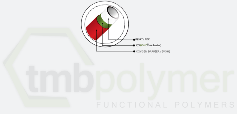 ATABOND® adhesive resin for multilayer oxygen barrier pipes (3 or 5 layers)  is a maleic anhydride modified polyetyhlene. It is designed to bond to a variety of barrier materials, such as nylon and ethylene vinyl alcohol (EVOH), etc.